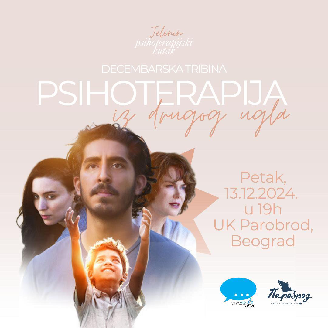 Циклус трибина Психотерапија из другог угла ће се, у петак 13. децембра, од 19ч, бавити књигом и играним филмом "Lion" (2016) који су заснованеи на истинитој причи о дечаку који се једне вечери изгубио, и након неуспеле потраге бива усвојен.