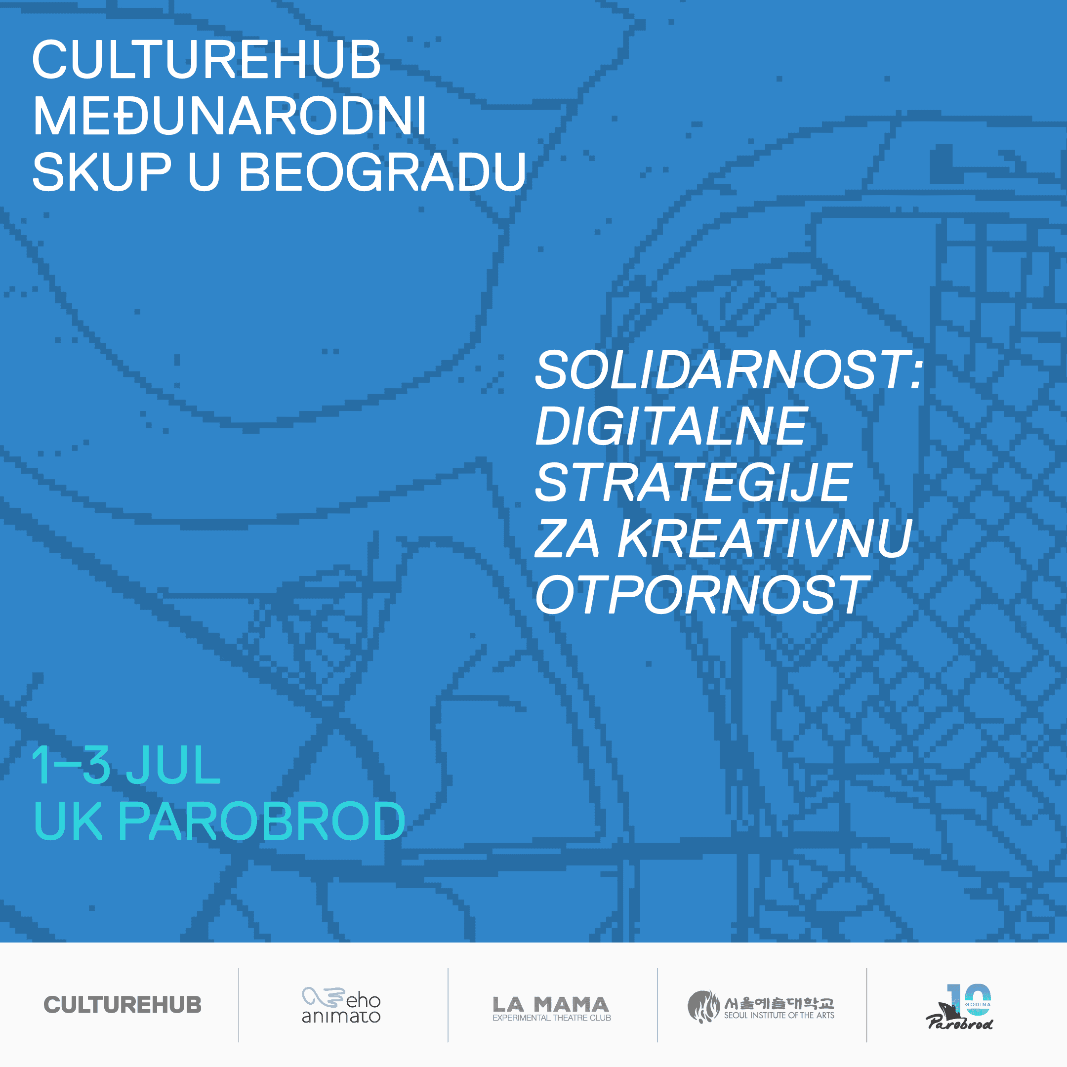 CultureHub i La MaMa iz Njujorka, sa kolektivom Eho animato iz Beograda, organizuju Međunarodni skup “Solidarnost - digitalne strategije za kreativnu otpornost” (1 - 3. jul 2021. UK Parobrod)