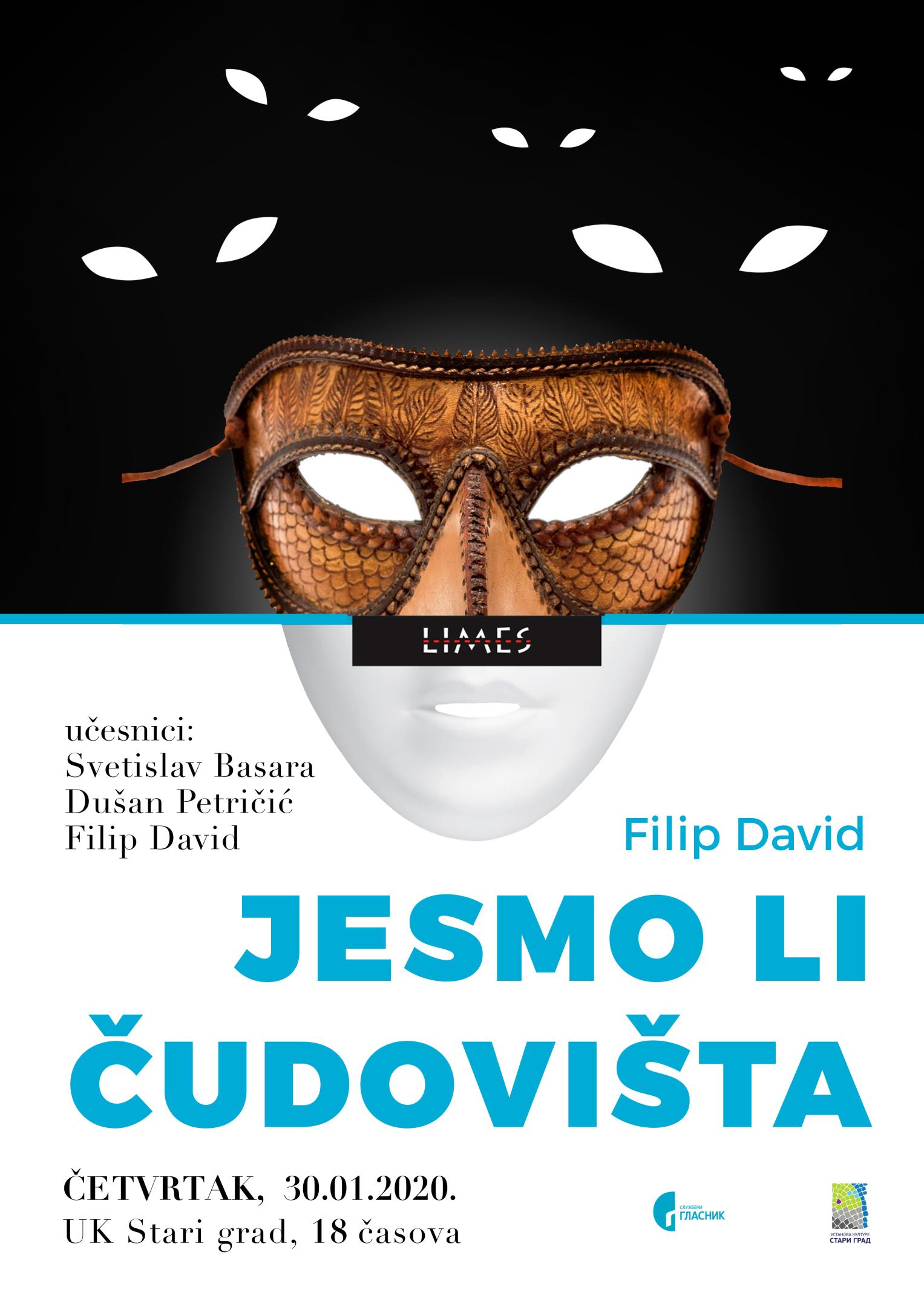 Promocija knjige eseja ’’Jesmo li čudovišta’’ (Službeni glasnik, 2019) Filipa Davida, književnika, dramaturga i dobitnika NIN-ove nagrade, održaće se u četvrtak, 30. januara 2020. od 18 časova u UK Stari grad, Teatar, prvi sprat.